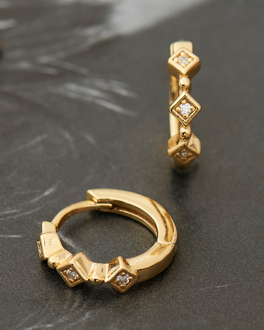 Zilver vergulde oorringen met 3 zirkonia's. Upgrade je earparty met deze Sparkle Huggie Hoops van Ania Haie. Deze sprankelende oorbellen zijn de perfecte toevoeging aan elke look van een normale kantoor dag tot aan een chic diner!