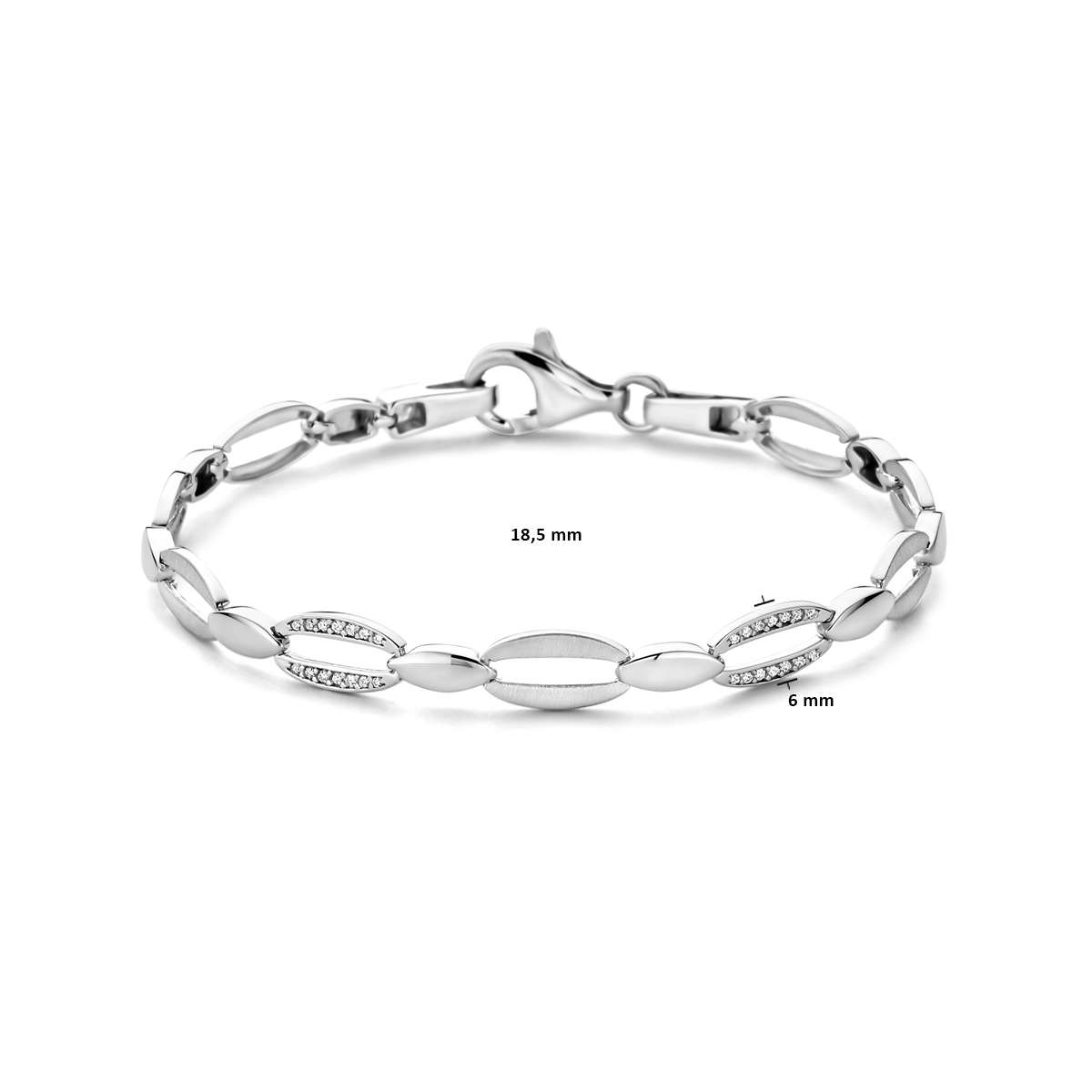 Gerhodineerd 925 zilveren armband uitgevoerd met zirkonia. De armband heeft een schakelbreedte van 6mm en draaglengte van 18.5cm. Uitgevoerd met karabijnsluiting.