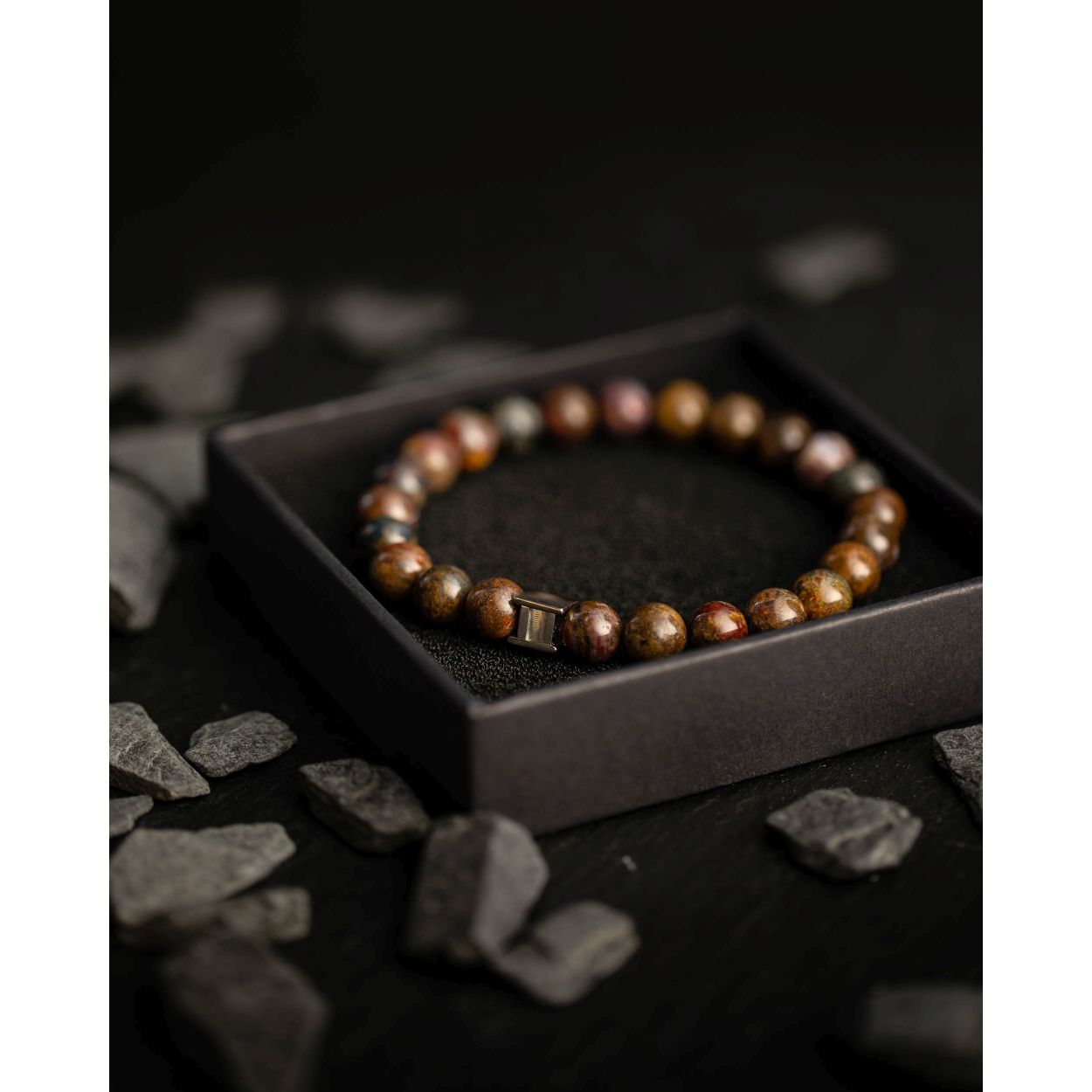 Dit is een Gemini Gem Hurricane L mannenarmband. Deze heeft een pietersite steen.