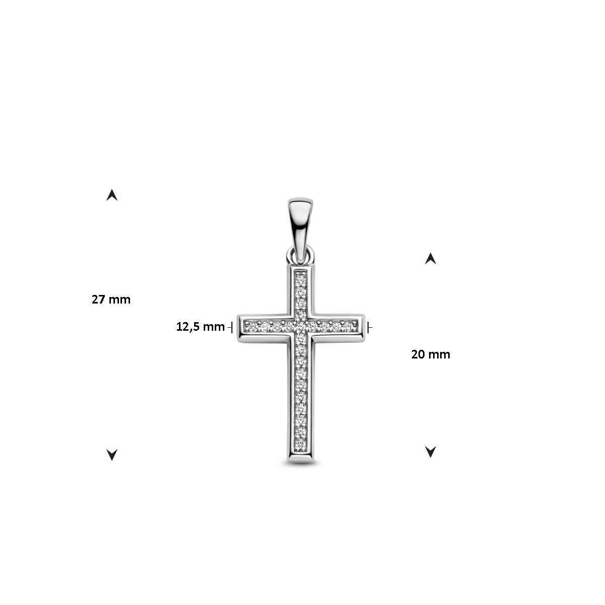 Gerhodineerd 925 zilveren hanger in de vorm van een kruis met zirkonia.