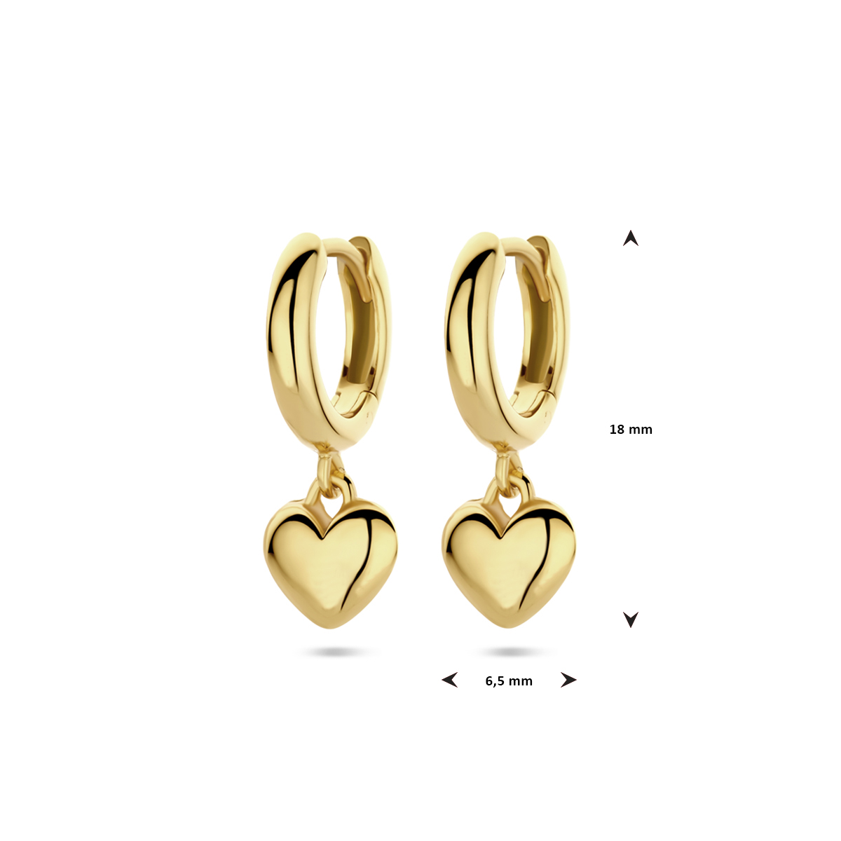 Verguld op 925 zilveren klapoorringen uitgevoerd met een hartje. De oorringen hebben een totale hoogte van 18mm.