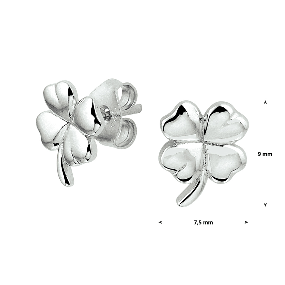 Deze gerhodineerd zilveren klavertje oorknoppen hebben een afmeting van 9x7.5mm. De klavertjeblaadjes hebben volgens de legende elk hun eigen voorstelling. Het eerste blad is hoop en het tweede blad is vertrouwen. Het derde blad is liefde en het vierde blad staat voor geluk. Door de zeldzaamheid en de vorm wordt het vinden of krijgen van een klavertje vier sinds de middeleeuwen beschouwd als een geluksbrenger. Tip: Leuk om kado te geven!
