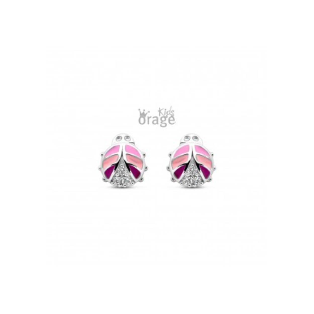 K2515 Oorringen lieveheersbeestje roze 925 rh cz (V/16)