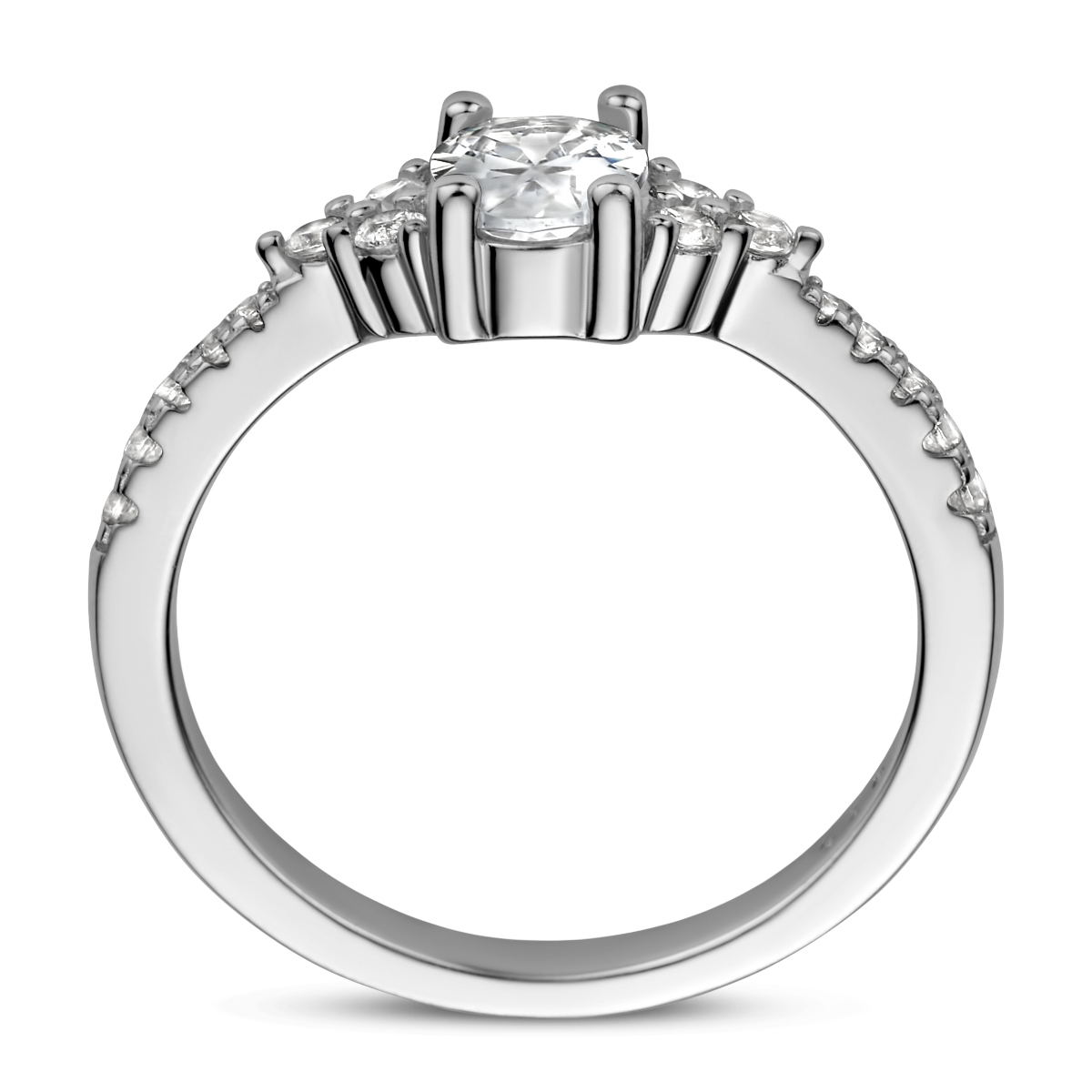 Gerhodineerd 925zilveren ring uitgevoerd met schitterende zirkonia. De ring heeft een breedte van 7mm.