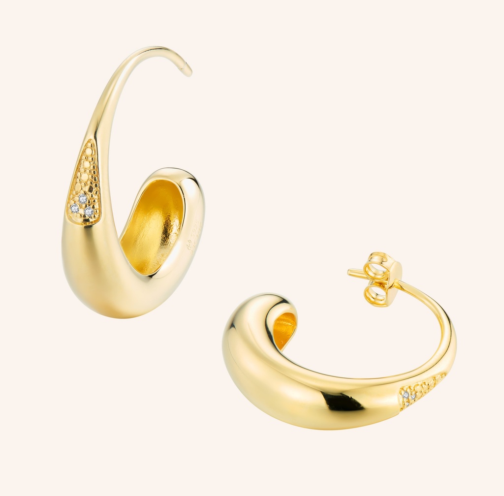 Inspired by the gooey, rich and delicious texture of sweet honey, these large hoops are handset with 3x natural white diamonds – a strikingly strong look, fit only for the Queen bees.